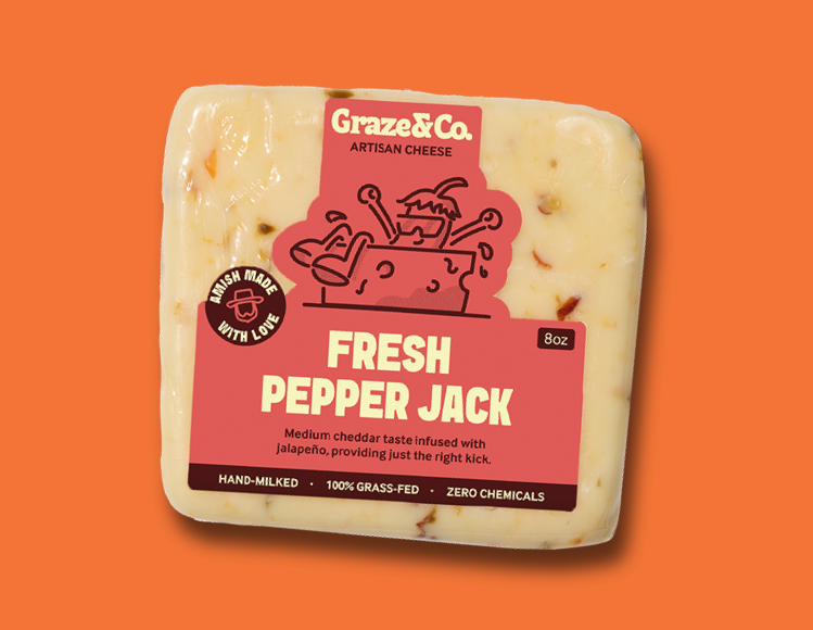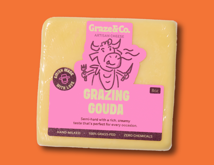 Graze cheese is made using traditional artisanal methods, using grass-fed ingredients sourced from sustainable Amish farms. Our focus is on quality, authenticity, and providing a healthy, delicious product.