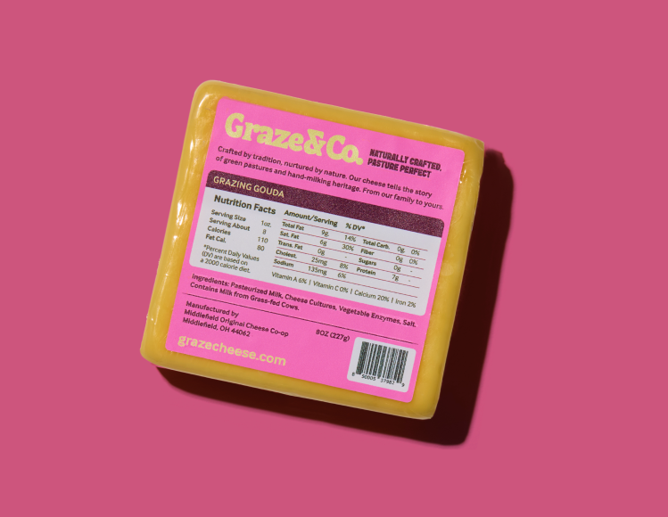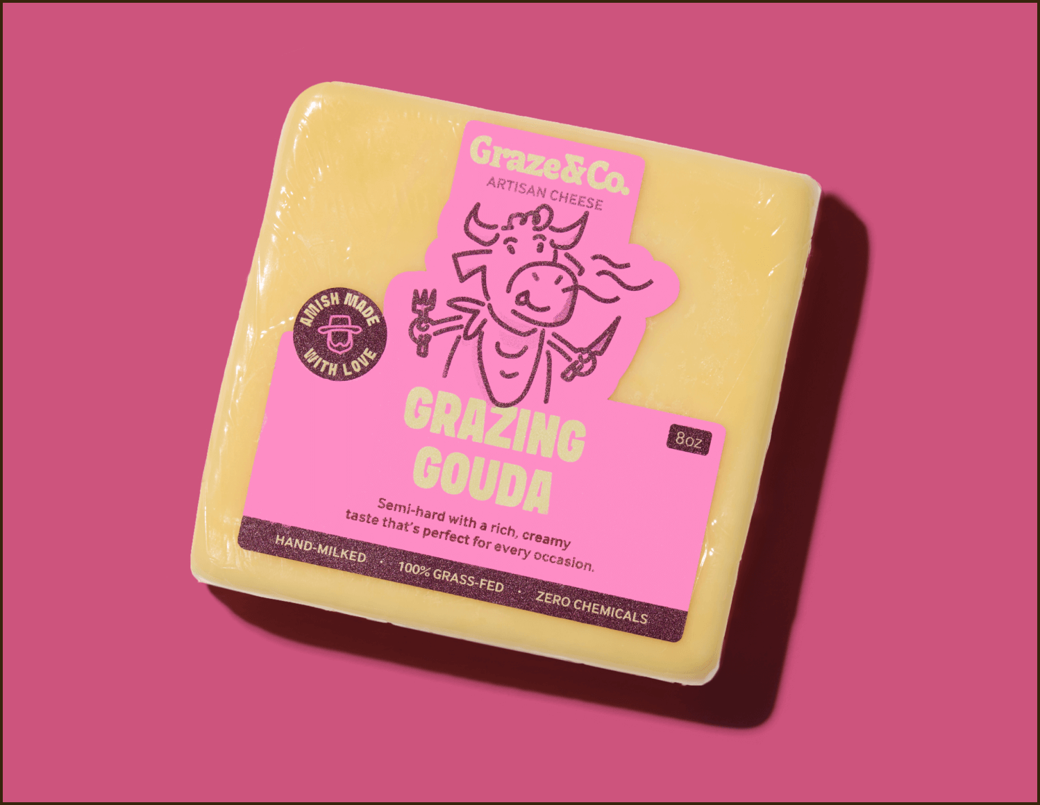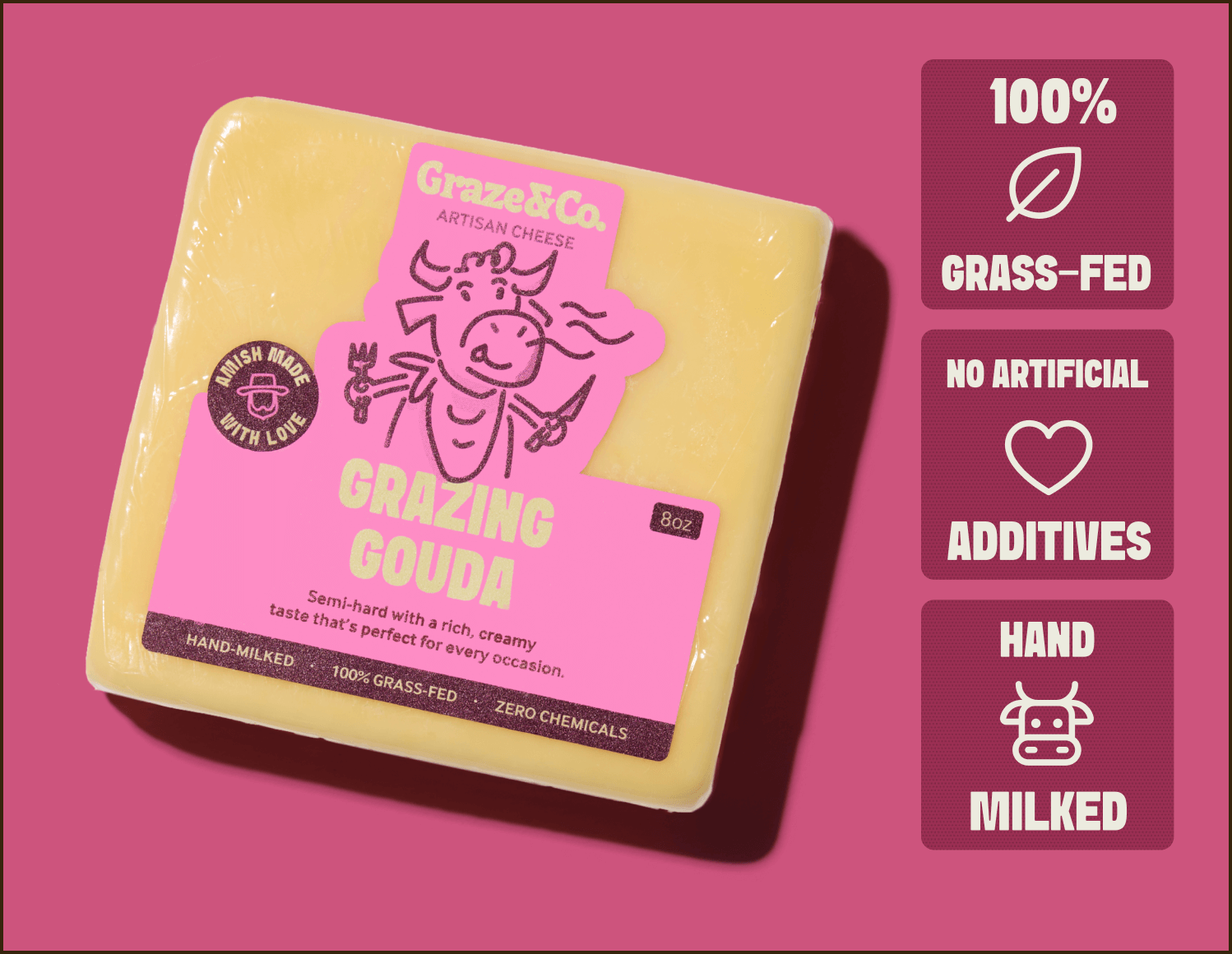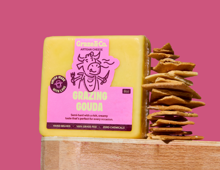 Graze cheese is made using traditional artisanal methods, using grass-fed ingredients sourced from sustainable Amish farms. Our focus is on quality, authenticity, and providing a healthy, delicious product.