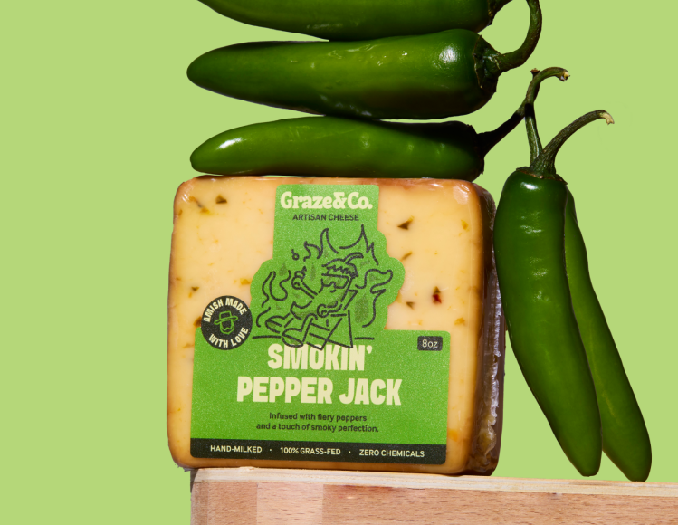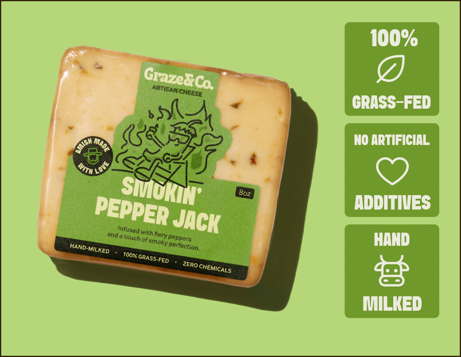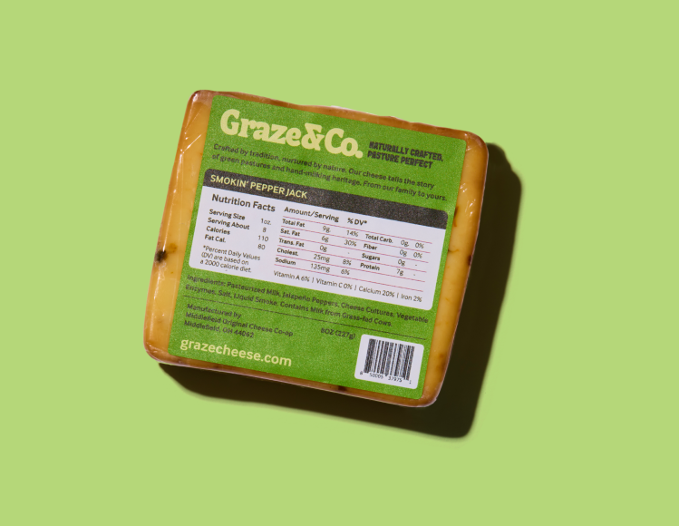 Graze cheese is made using traditional artisanal methods, using grass-fed ingredients sourced from sustainable Amish farms. Our focus is on quality, authenticity, and providing a healthy, delicious product.